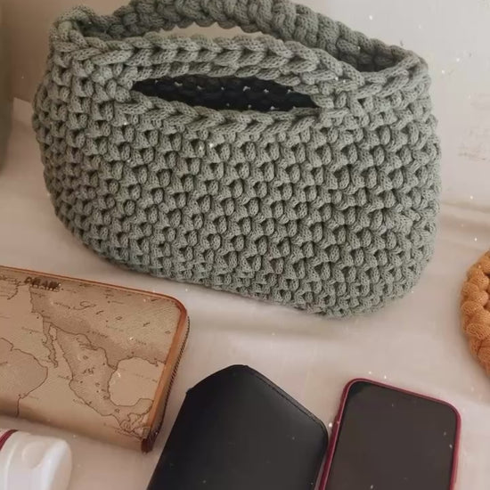 Borsa Camelia all'uncinetto fatta a mano, un modello elegante e versatile che nasce nel mese di febbraio, proprio come il fiore della Camelia che inizia la sua fioritura in questo periodo freddo.